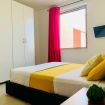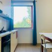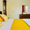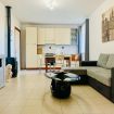 L’appartamento si apre su una comoda zona living climatizzata, dotata di divano letto da una piazza e mezza, TV, angolo cottura completamente attrezzato, tavolo da pranzo e sedie. Un disimpegno con dispensa conduce al bagno completo (doccia, WC, bidet e lavatrice) e a una camera matrimoniale ampia e luminosa.